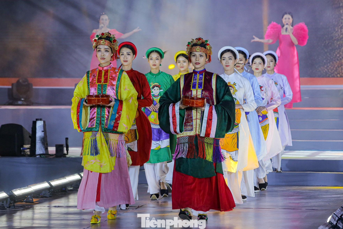 | Màn trình diễn là sự kết hợp giữa âm nhạc, ánh sáng và trình diễn áo dài 3 miền Bắc - Trung - Nam của Hà Nội - Huế - TP Hồ Chí Minh... đã thu hút đông đảo người xem tại khu vực tượng đài Cảm tử trên phố Đinh Tiên Hoàng. |
