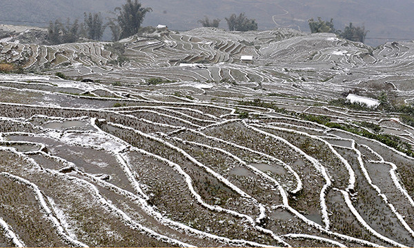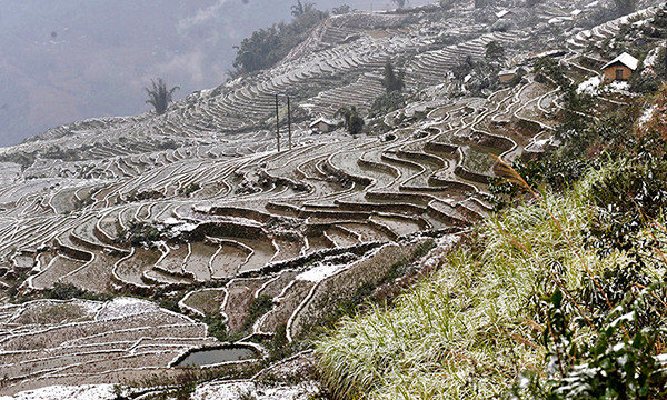 Khung cảnh thiên nhiên khác cuốn hút nhiều tay máy ở Y Tý trong những ngày băng tuyết này là ruộng bậc thang