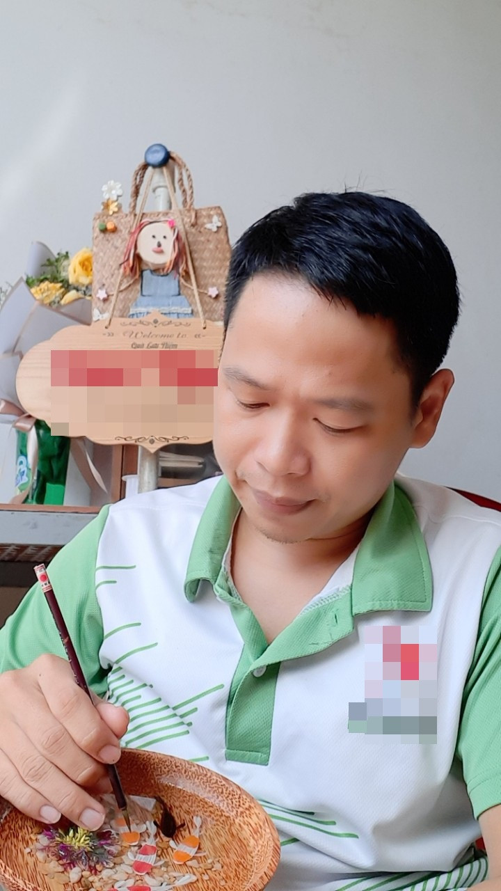 Hằng ngày anh miệt mài vẽ những chú cá vàng, cá koi bằng tranh 3D tuyệt đẹp. Anh chia sẻ: "Để bức tranh có hồn và thể hiện được cái “thần” của sản phẩm, mình phải chăm chút từng nét một. Hơn nữa, còn đòi hỏi phải kiên nhẫn, tỉ mỉ, sáng tạo và trau chuốt trong từng nét vẽ để đảm bảo độ chính xác giữa các lớp. Bởi thông thường phải vẽ từ 4 đến 5 lớp vẽ mới định hình thành một chú cá".