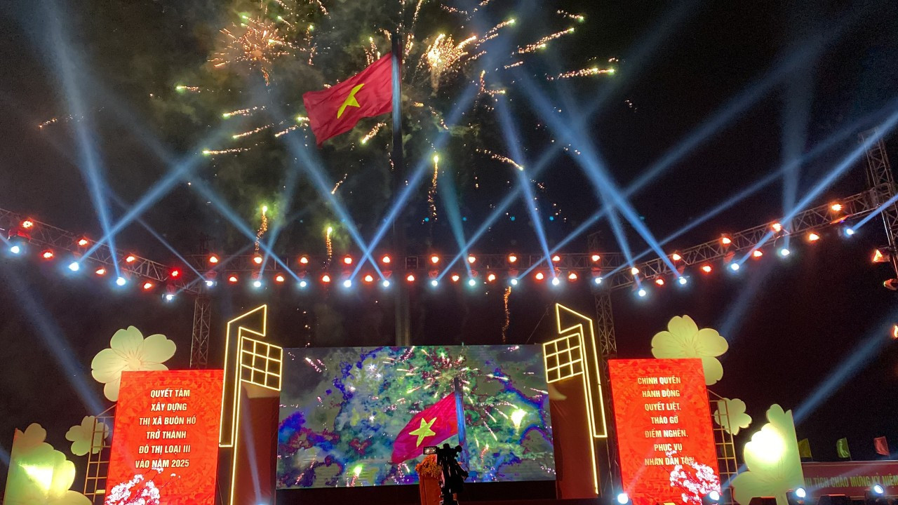 | Màn bắn pháo hoa nghệ thuật tại thị xã Buôn Hồ |