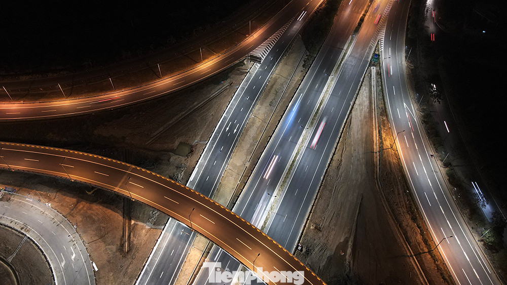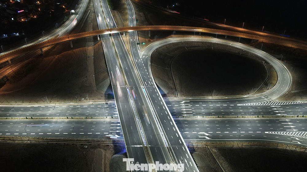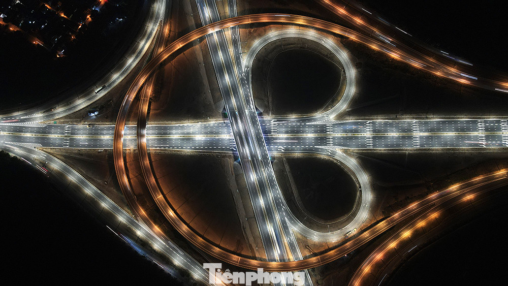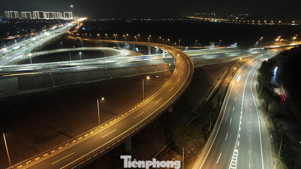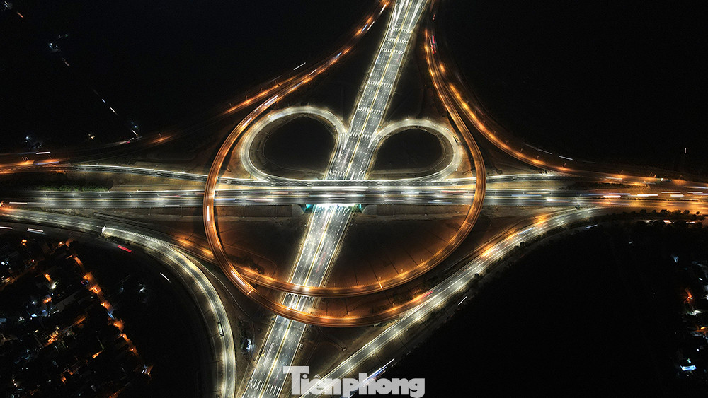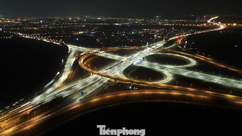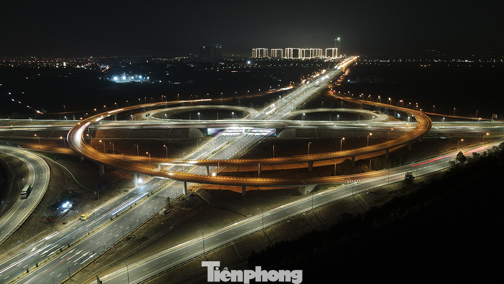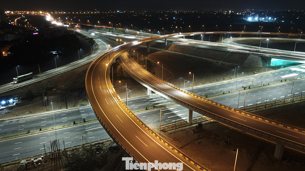 Nút giao siêu rộng này sáng rực trong đêm, đây là công trình giao thông điểm nhấn khu vực phía Đông của Hà Nội.