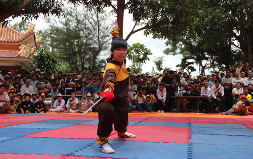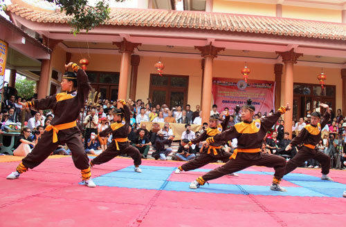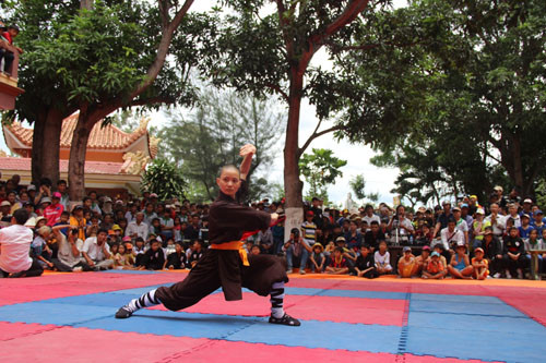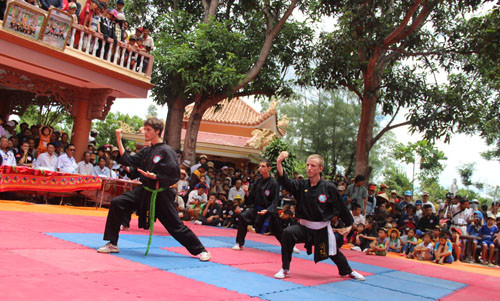 Sáng 2/8, đông đảo người dân và du khách đã tới chùa Long Phước (huyện Tuy Phước, Bình Định) để được tận mắt chưng kiến những màn biểu diễn võ thuật đặc sắc của 26 đoàn võ thuật đến từ nhiều quốc gia Pháp, Ý, Bỉ, Ba Lan, Đức… Đây là một trong số những hoạt động trong khuôn khổ Liên hoan quốc tế võ cổ truyền Việt Nam 2014 tại Bình Định.