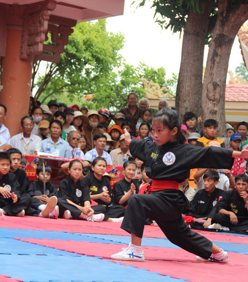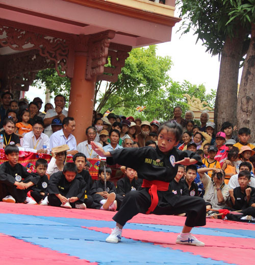 Hình ảnh trình diễn võ thuật của 26 đoàn trong nước và quốc tế tại Giao lưu võ đường chùa Long Phước trưa ngày 2/8.