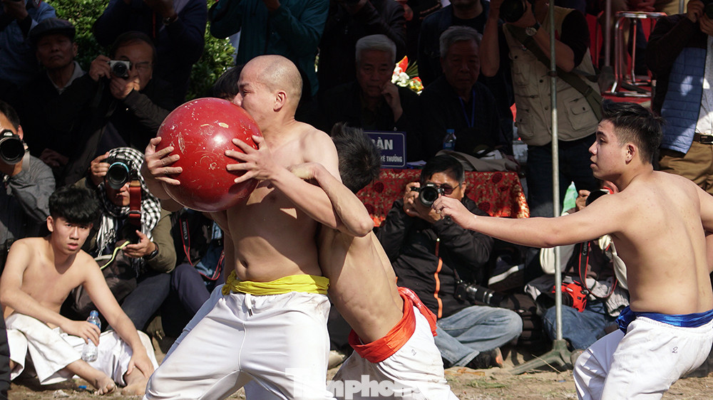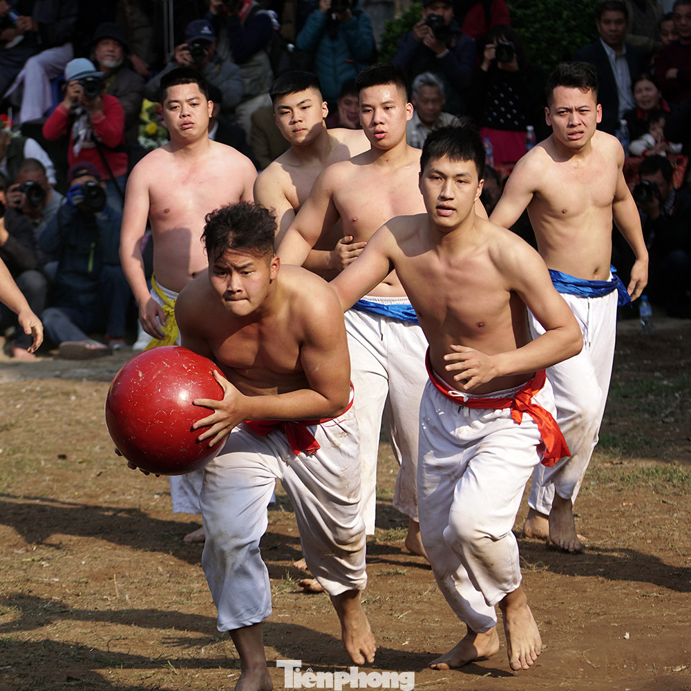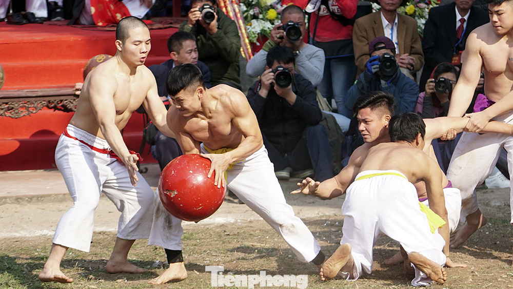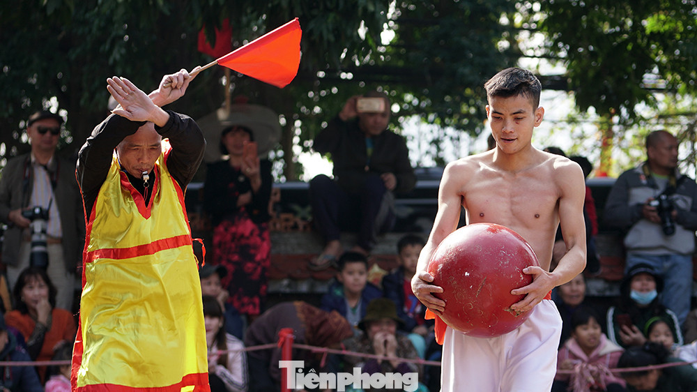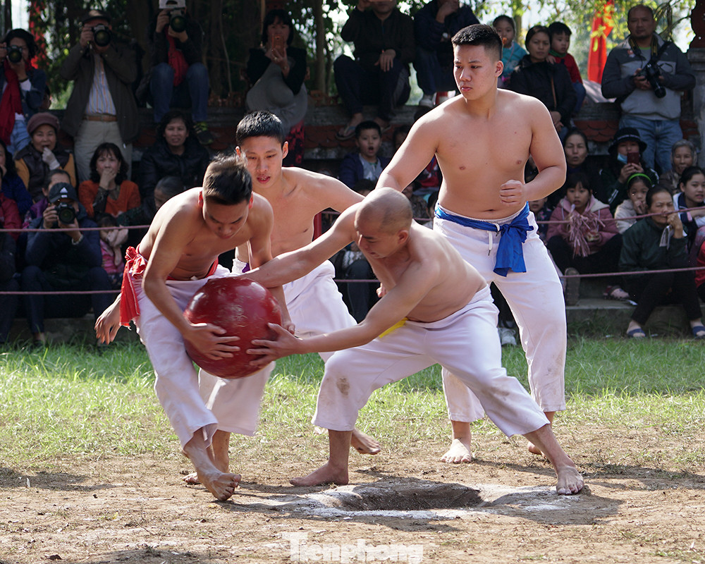 Chiều mùng 6 Tết, dân làng Thúy Lĩnh (phường Lĩnh Nam, Hoàng Mai, Hà Nội) đã tổ chức lễ hội vật cầu truyền thống. Những nhân vật chính của sự kiện là các tràng trai khỏe mạnh với thân hình vạm vỡ.