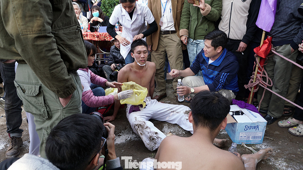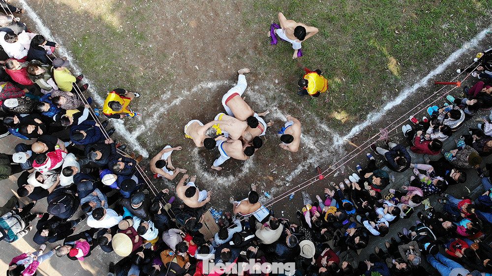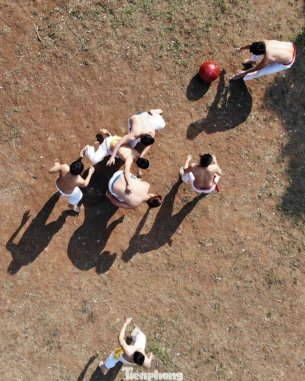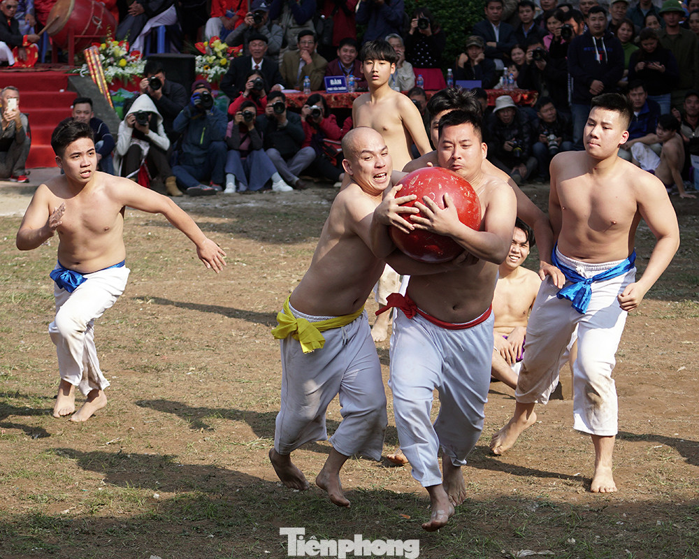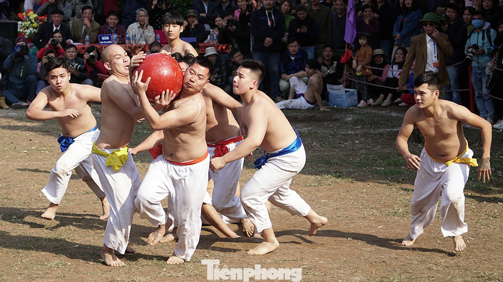Chiều mùng 6 Tết, dân làng Thúy Lĩnh (phường Lĩnh Nam, Hoàng Mai, Hà Nội) đã tổ chức lễ hội vật cầu truyền thống. Những nhân vật chính của sự kiện là các tràng trai khỏe mạnh với thân hình vạm vỡ.