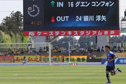 Ba tháng kể từ khi chuyển hộ khẩu đến CLB Mito Hollyhock (Nhật Bản), cựu tiền đạo HAGL lần đầu được góp mặt trong một trận đấu chính thức ở đấu trường J-League 2.