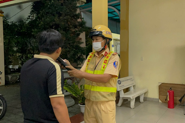 Đến 21 giờ 10, cảnh sát lập biên bản người đàn ông quê tỉnh Lào Cai do có kết quả đo 0,675mg/l khí thở.