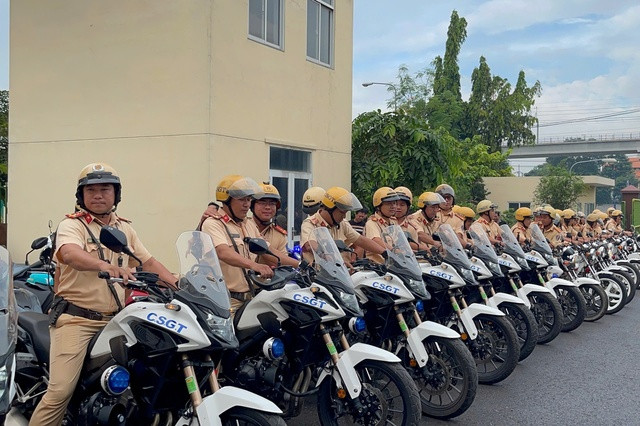 Đội CSGT - TT Công an TP Thủ Đức trong ngày đầu ra quân tại lễ ra quân cao điểm tấn công, trấn áp tội phạm, bảo đảm an ninh trật tự dịp Tết Ất Tỵ 2025.