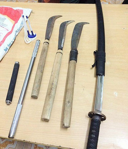Tại cơ quan công an, bước đầu nhóm đối tượng khai nhận mang số vũ khí trên để đi đánh nhau với một nhóm thanh niên khác.