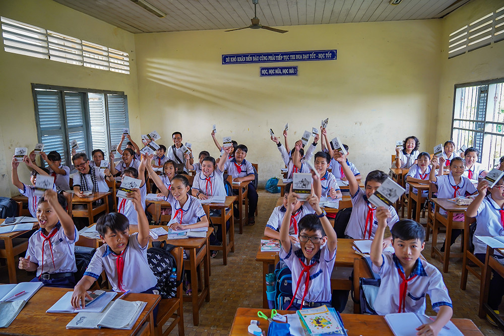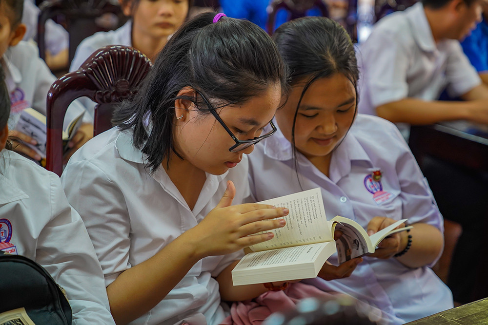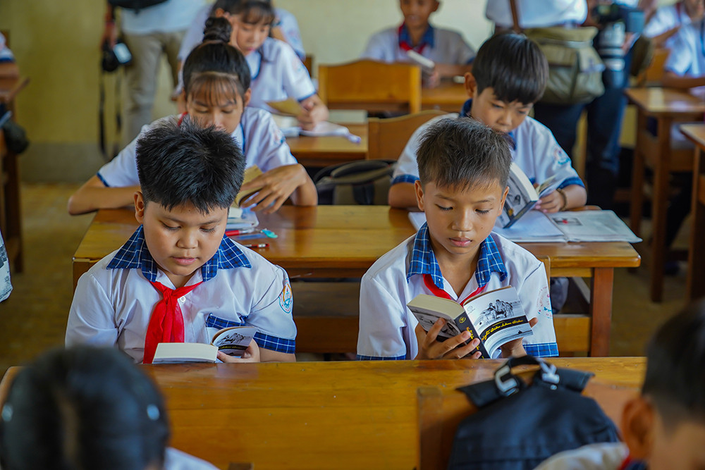 Ở băng ghế đá góc sân trường, nhóm học sinh chăm chú đọc sách từ hành trình vừa trao tặng. Em Trần Thị Thúy Vi nói rằng, trước giờ chủ yếu là đọc truyện tranh nhưng sau khi cầm được bộ sách đổi đời trong tay và xem qua phần nội dung tóm lược bên ngoài quyển Nghĩ giàu làm giàu khiến em phải suy nghĩ lại. Em sẽ mạnh mẽ và tự tin hơn trong học tập. Đặc biệt, nun nấu ý tưởng để sau này khi tốt nghiệp đại học ra trường bước vào khởi nghiệp.