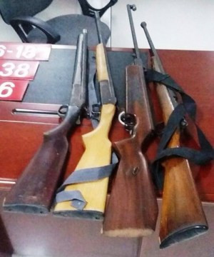 Trong nhà Hải, cảnh sát thu một súng AK47, 4 súng hoa cải, một súng ngắn cùng hàng trăm viên đạn.