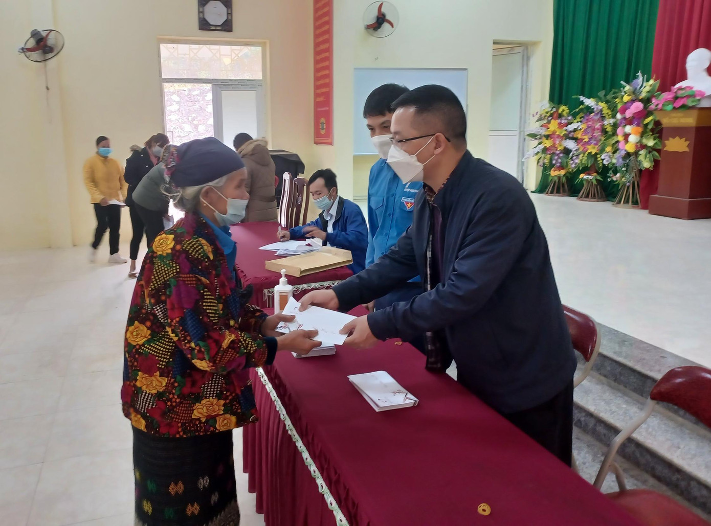 Ban tổ chức đã bố trí người hướng dẫn, dung dịch sát khuẩn tay tại các địa điểm thuận tiện cho người dân nhận quà. Mọi người dân đều thực hiện nghiêm túc các quy định về phòng chống dịch bệnh COVID-19.