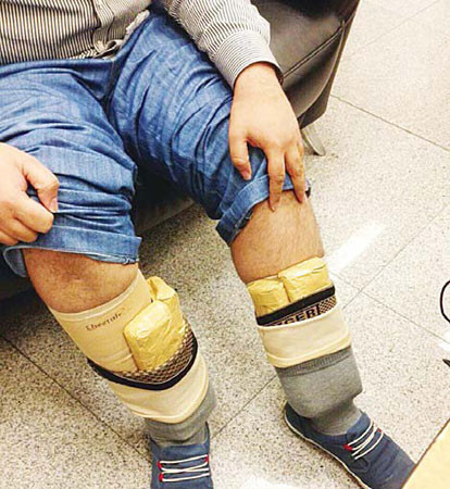 Ở sân bay Sharjah (UAE), nhân viên hải quan phát hiện một hành khách Ấn Độ trông có vẻ hồi hộp bất thường và đề nghị anh ta dỡ hành lý để kiểm tra. Trong túi không có gì khả nghi. Khi kiểm tra kỹ, họ phát hiện ra tay cầm chiếc túi không phải làm bằng thép mà làm bằng vàng. Hành khách này cùng với một thợ kim hoàn UAE thay thế tay cầm chiếc túi đã bị bắt vì buôn lậu vàng.