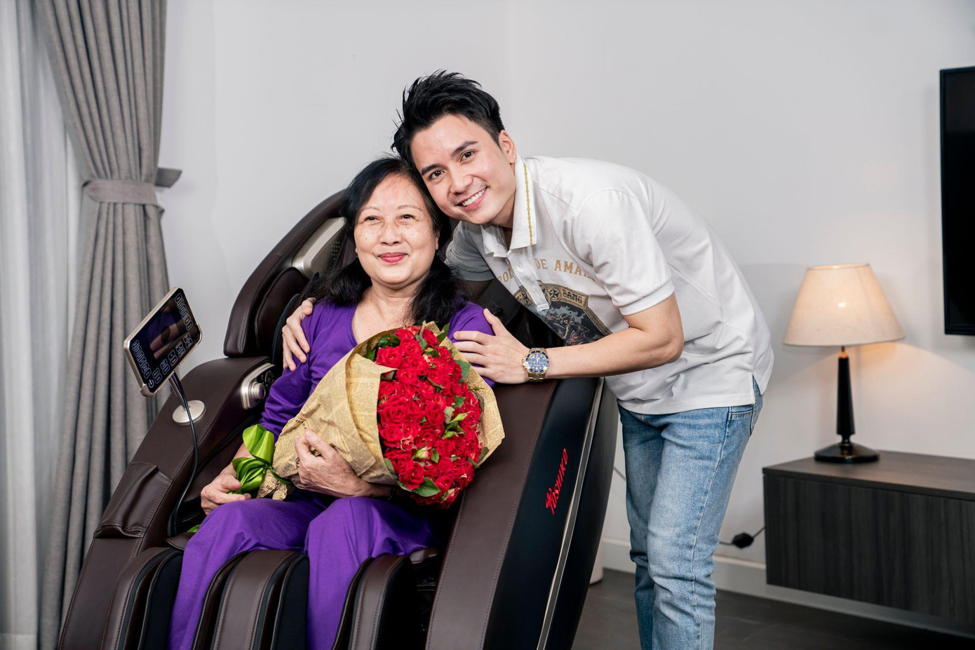 Chia sẻ thêm về lý do lựa chọn sản phẩm ghế massage toàn thân, nam diễn viên sinh năm 1988 cho biết, mẹ anh ngày một lớn tuổi, bệnh người già thường hay bị đau xương khớp, nhức mỏi cơ thể, mất ngủ nhiều ngày nên anh rất lo lắng cho sức khỏe của mẹ. Tuy nhiên, vì công việc của anh và vợ đều khá bận rộn nên khó có thể sắp xếp thời gian để thường xuyên ở bên mẹ.