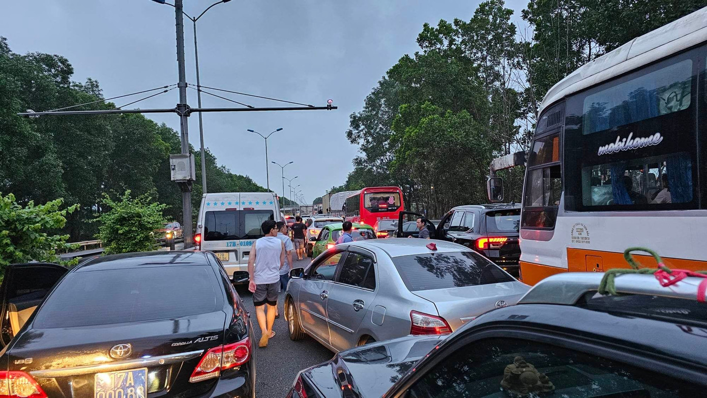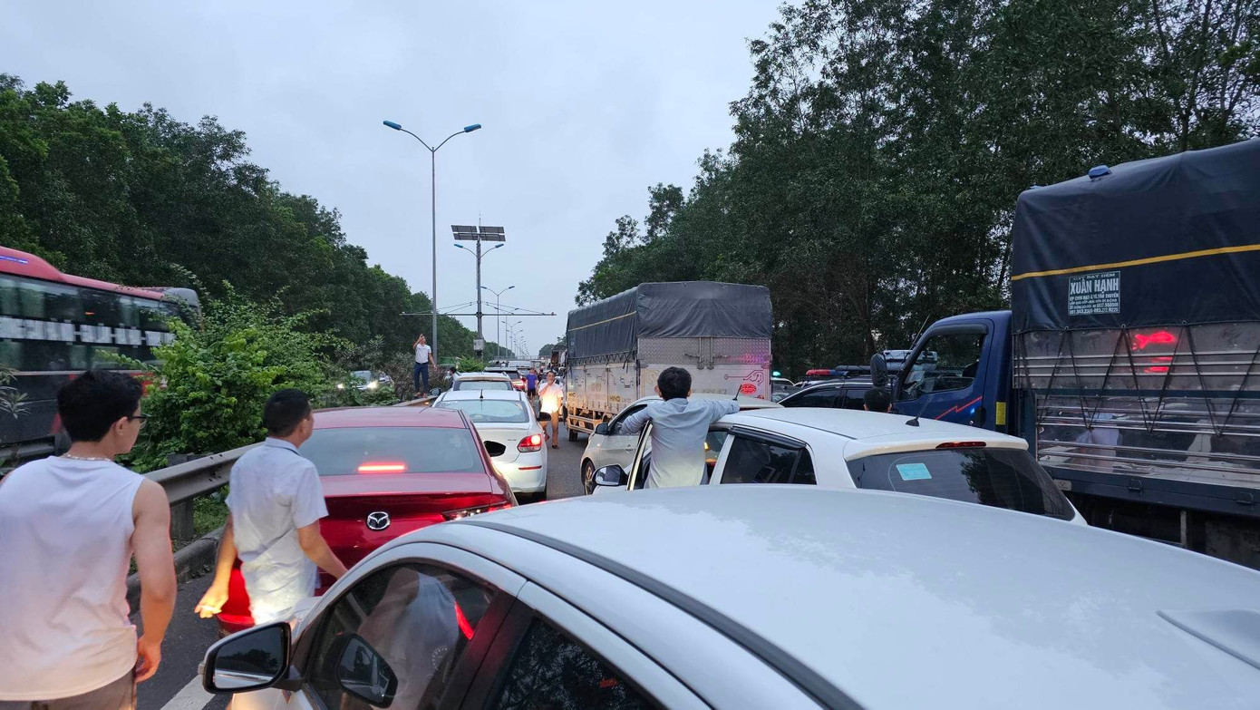 | Cao tốc Pháp Vân - Cầu Giẽ ùn đoạn xã Tiên Hiệp, TP Phủ Lý (Hà Nam) cách nút giao Liêm Tuyền khoảng 6km đang bị tắc dài hàng chục km. Ảnh: Phan Thiên |