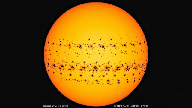 Theo dữ liệu vừa công bố của Trung tâm Dự báo thời tiết không gian (SWPC) thuộc Cơ quan Quản lý khí quyển và đại dương Mỹ (NOAA), trung bình có tới 215,5 vết đen Mặt Trời xuất hiện cùng lúc trong tháng 8 vừa qua.