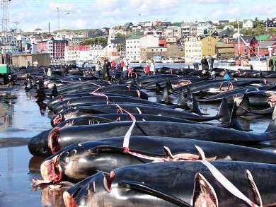 Đóng trên quần đảo Faroe là một tỉnh tự trị của Đan Mạch, được phép đánh bắt cá voi. Thịt và mỡ cá voi từ lâu đã trở thành thực phẩm không thể thiếu trong thực đơn hàng ngày của người dân địa phương.