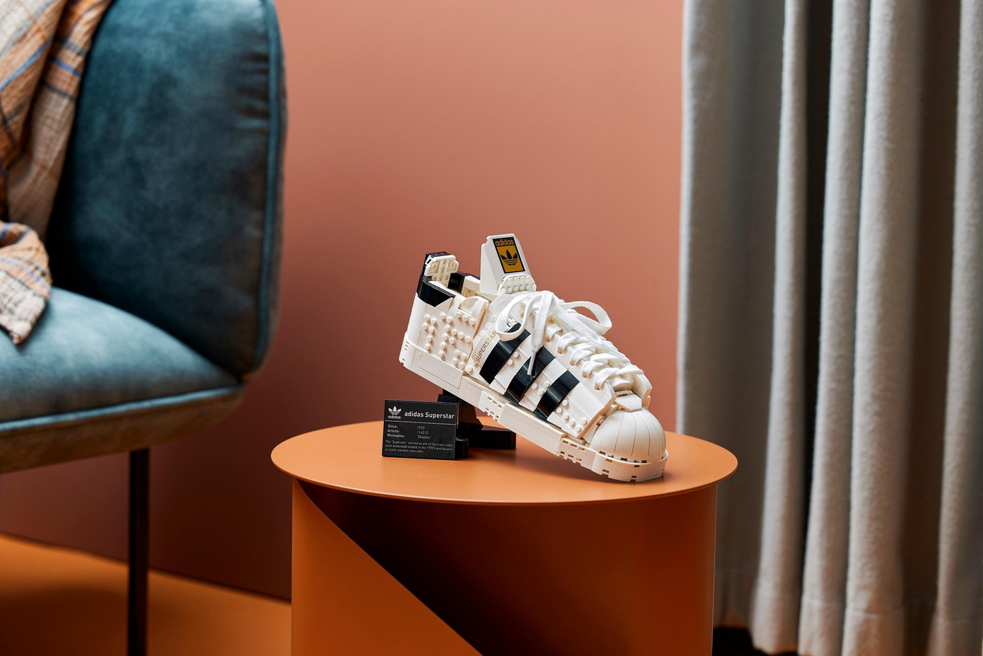 Mô hình có kích thước cao hơn 12 cm, dài 27 cm và rộng 9 cm, đi kèm giá đỡ và bảng trưng bày. Để tôn vinh sự sáng tạo và tinh thần đổi mới của mô hình LEGO adidas Originals Superstar, Tập đoàn LEGO đã mời sáu nhà sáng tạo đa dạng và đầy cảm hứng lắp ráp phiên bản giày thể thao Superstar bằng LEGO của riêng họ.