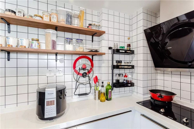 Khu vực bếp gọn gàng với bài trí khéo léo.
