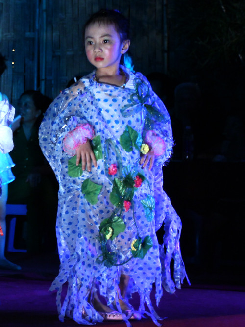 | Các bé vui vẻ diễn thời trang bảo vệ môi trường. |