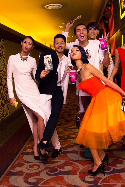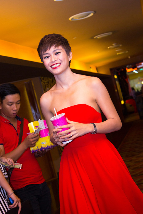 TPO - Quán quân mùa thứ tư của Vietnam's Next Top Model khoe vai trần gợi cảm và vòng một quyến rũ khi cùng với top 7 của chương trình đi xem phim tối 26/12.