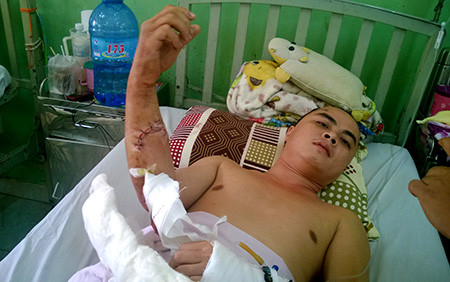 Tiếp xúc với PV trên giường bệnh, anh Nguyễn Tiến Trọng kể lại, tối 23/7, khi anh Trọng cùng những người thân trong gia đình đang bán quán thì bất ngờ xuất hiện khoảng 10 đối tượng đi trên xe máy ập vào trong. “Vừa bước vào có 3 người thanh niên rút đao, kiếm sáng loáng chém tới tấp vào em trai tôi, sau đó bọn chúng chém tôi nhiều nhát vào đầu, tay cho đến khi gục hẳn” – Anh Trọng nhớ lại.