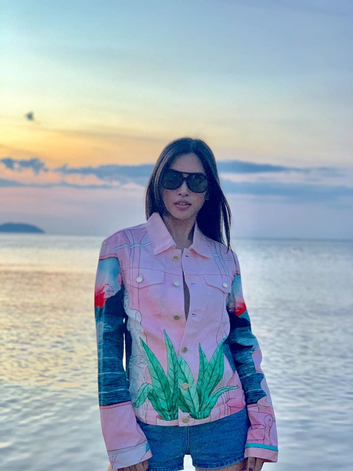 Hoa hậu Tiểu Vy cực 'ngầu' với gu thời trang ấn tượng khi chụp ảnh trước biển.