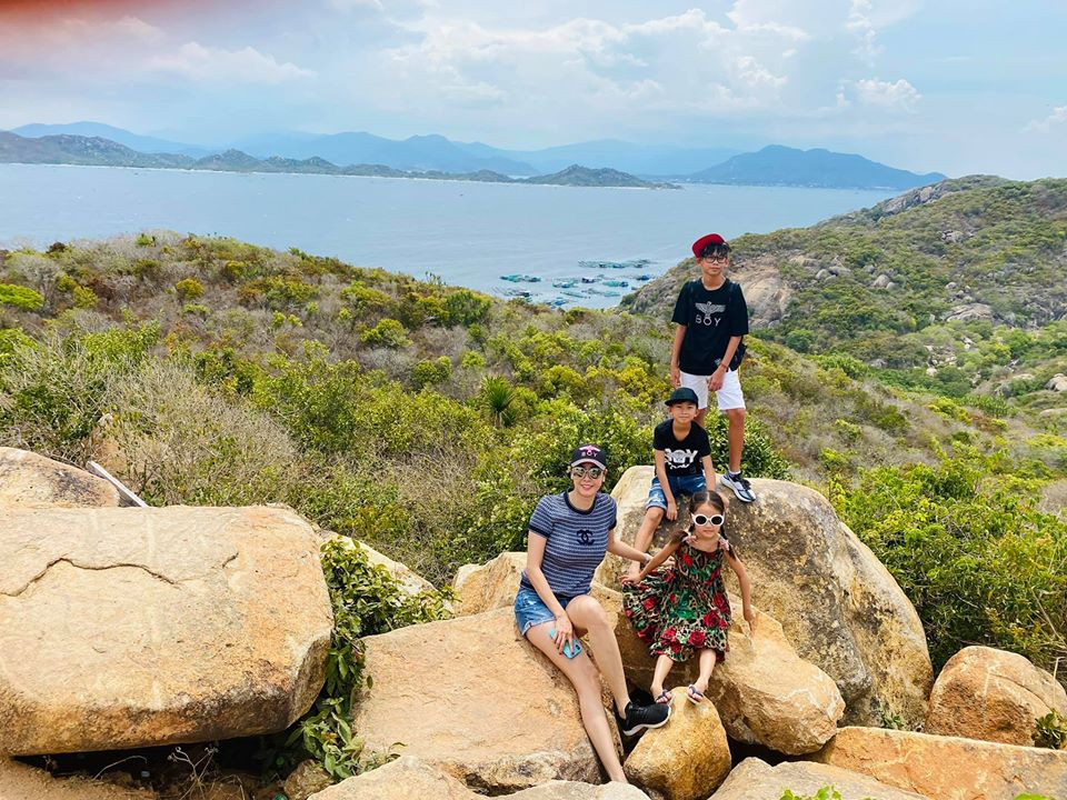 Hoa hậu Hà Kiều Anh và các con khám phá đảo Bình Ba.