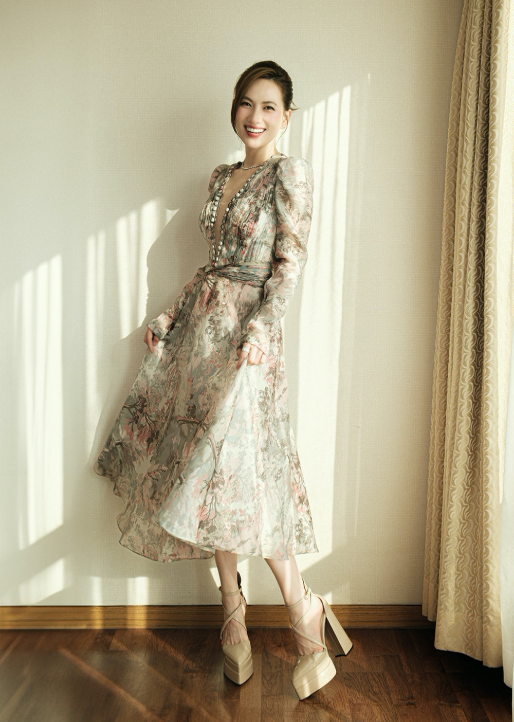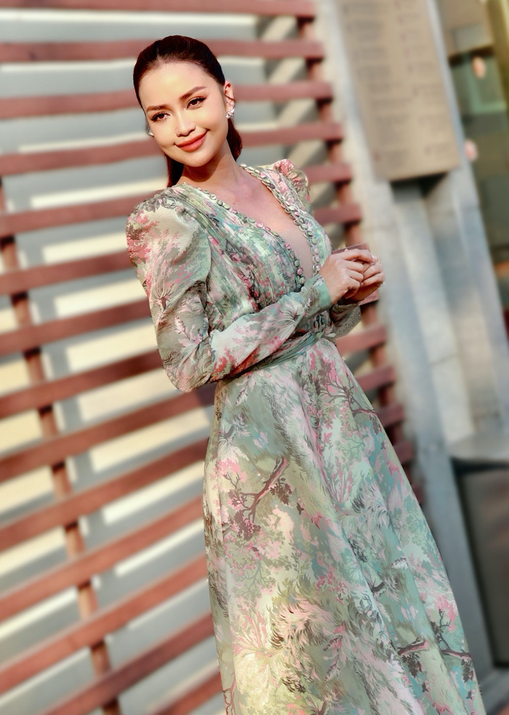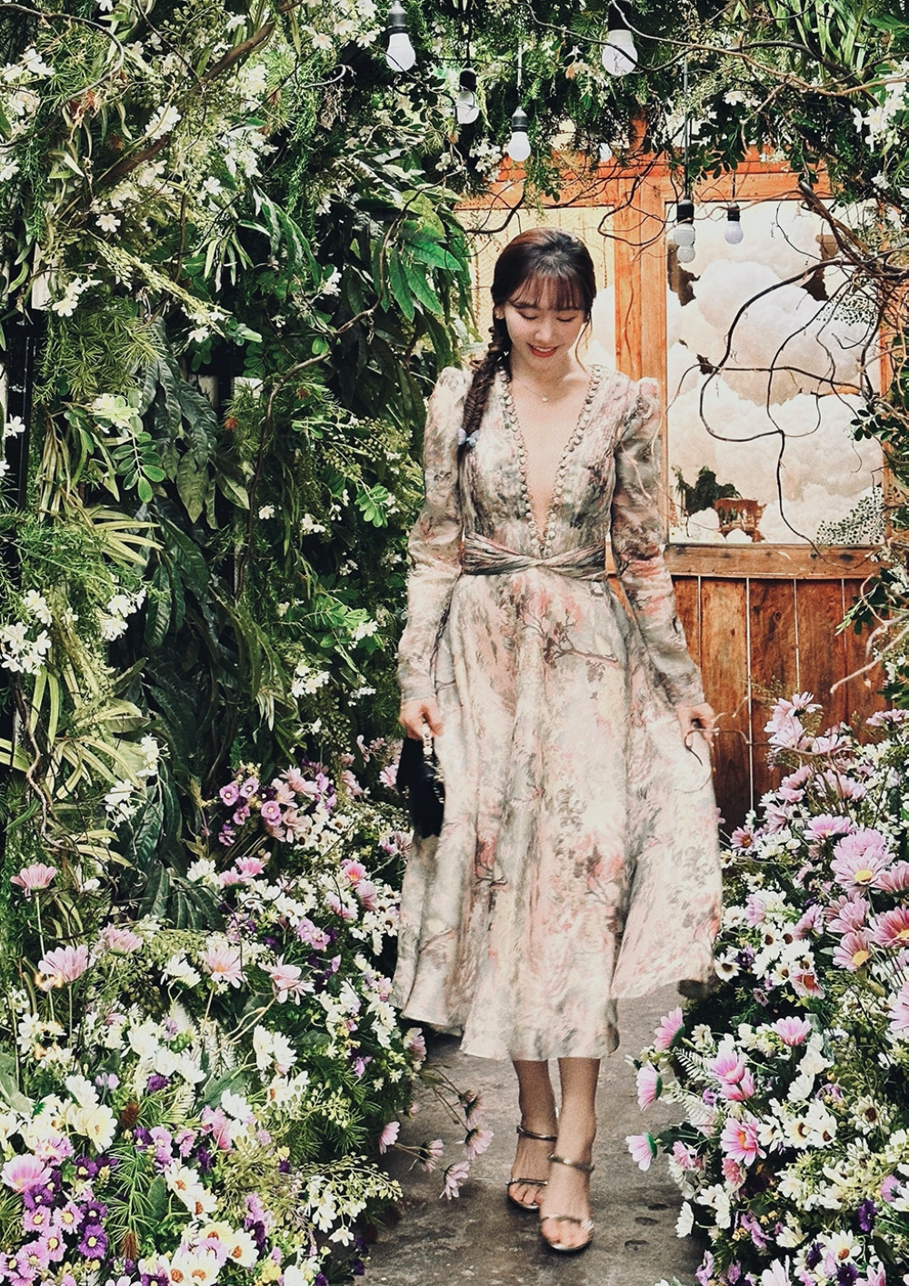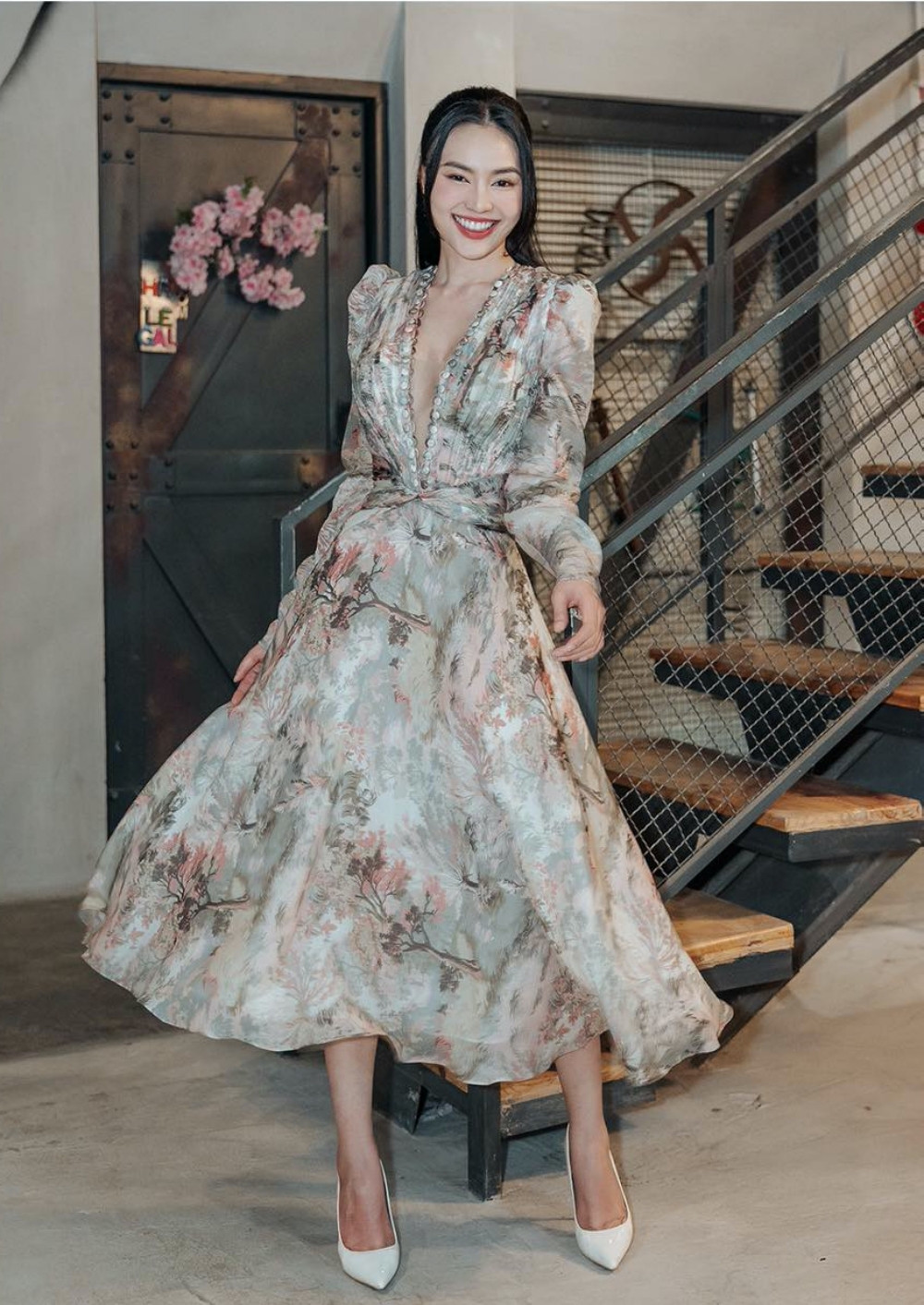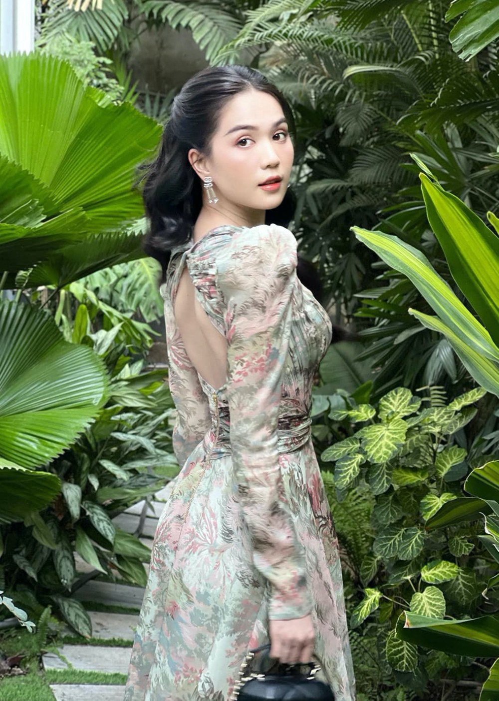 Mẫu váy có nhiều phiên bản màu sắc, hoạ tiết khác nhau, nhưng màu sắc được mỹ nhân Việt lựa chọn nhiều nhất chính là gam màu đẹp như một bức tranh. Họa tiết được in sắc nét trên nền chất liệu tơ gân mềm mại, bay bổng, mang đến vẻ đẹp cổ điển, mong manh và nhẹ nhàng, rất hợp với mùa Hè.
