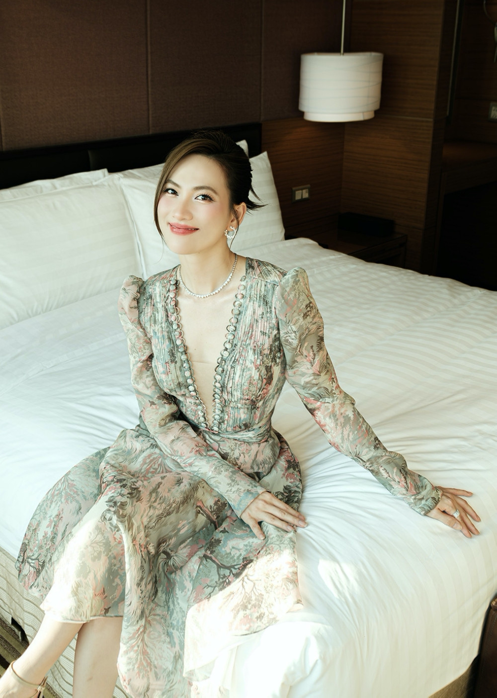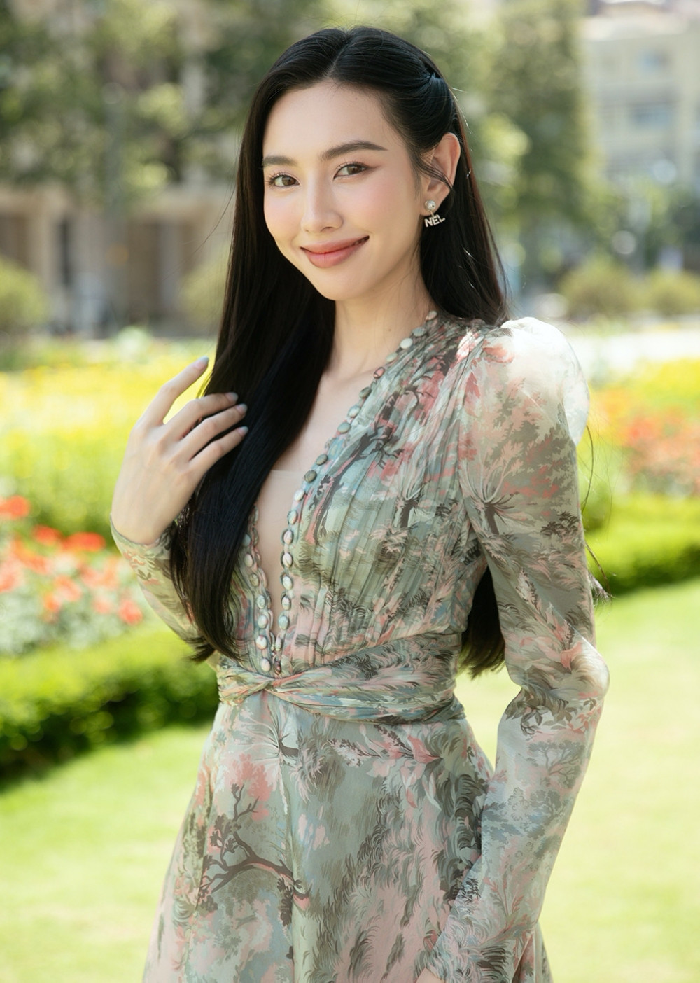Hoa hậu Thùy Tiên khoe nhan sắc dịu dàng giữa cái nắng Sài Gòn, nàng hậu kết hợp cùng giày và phụ kiện của thương hiệu Chanel.