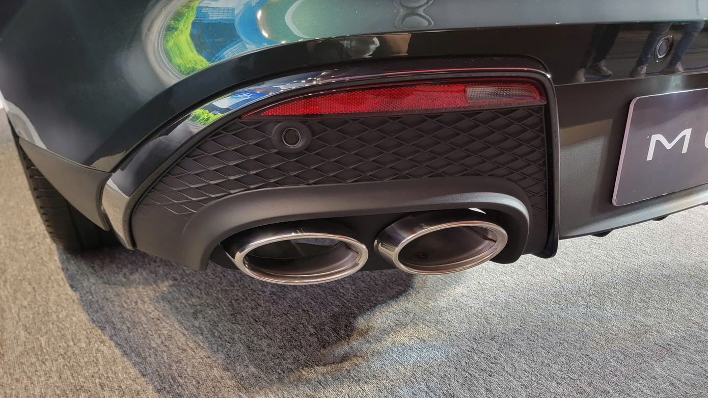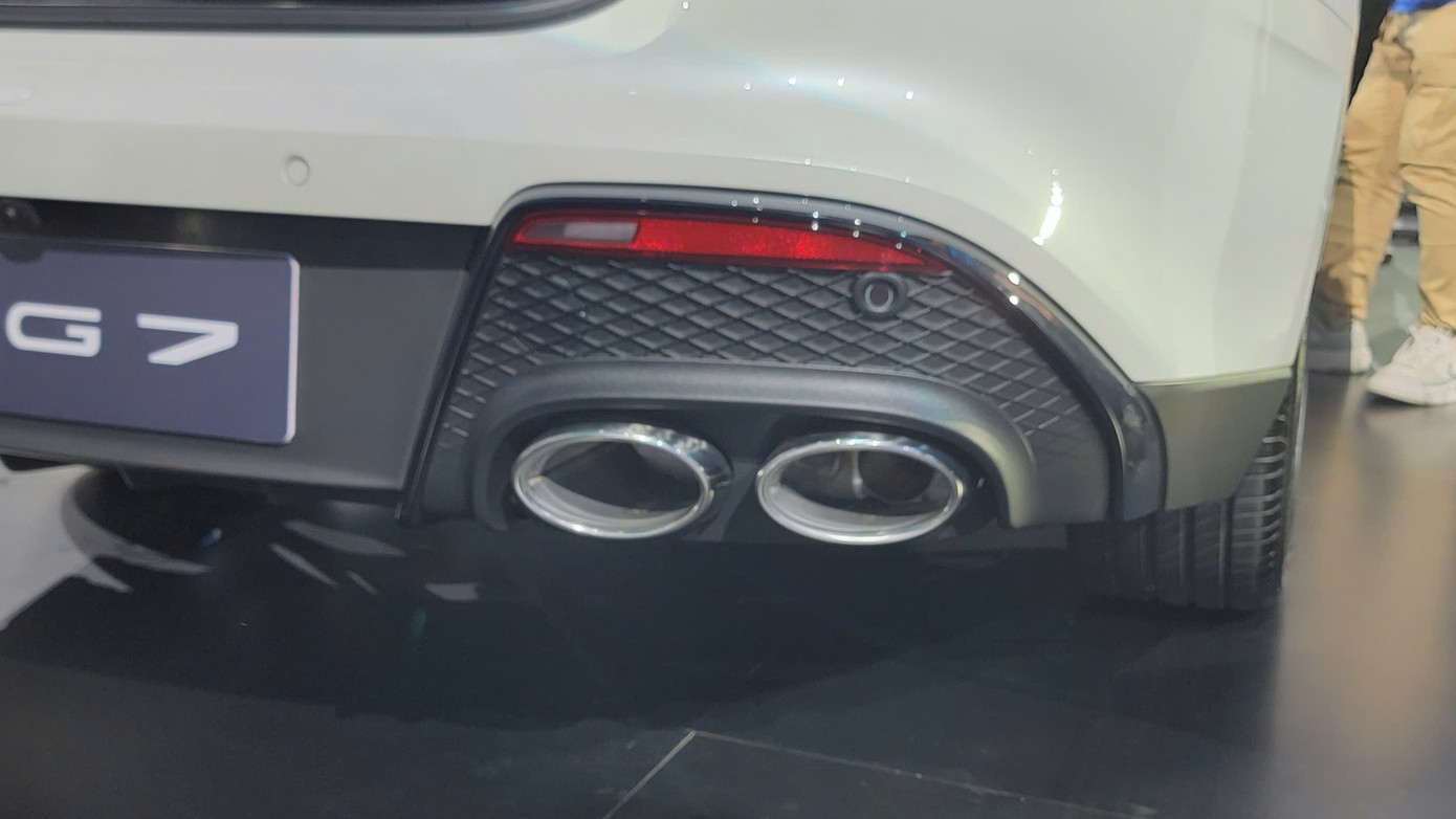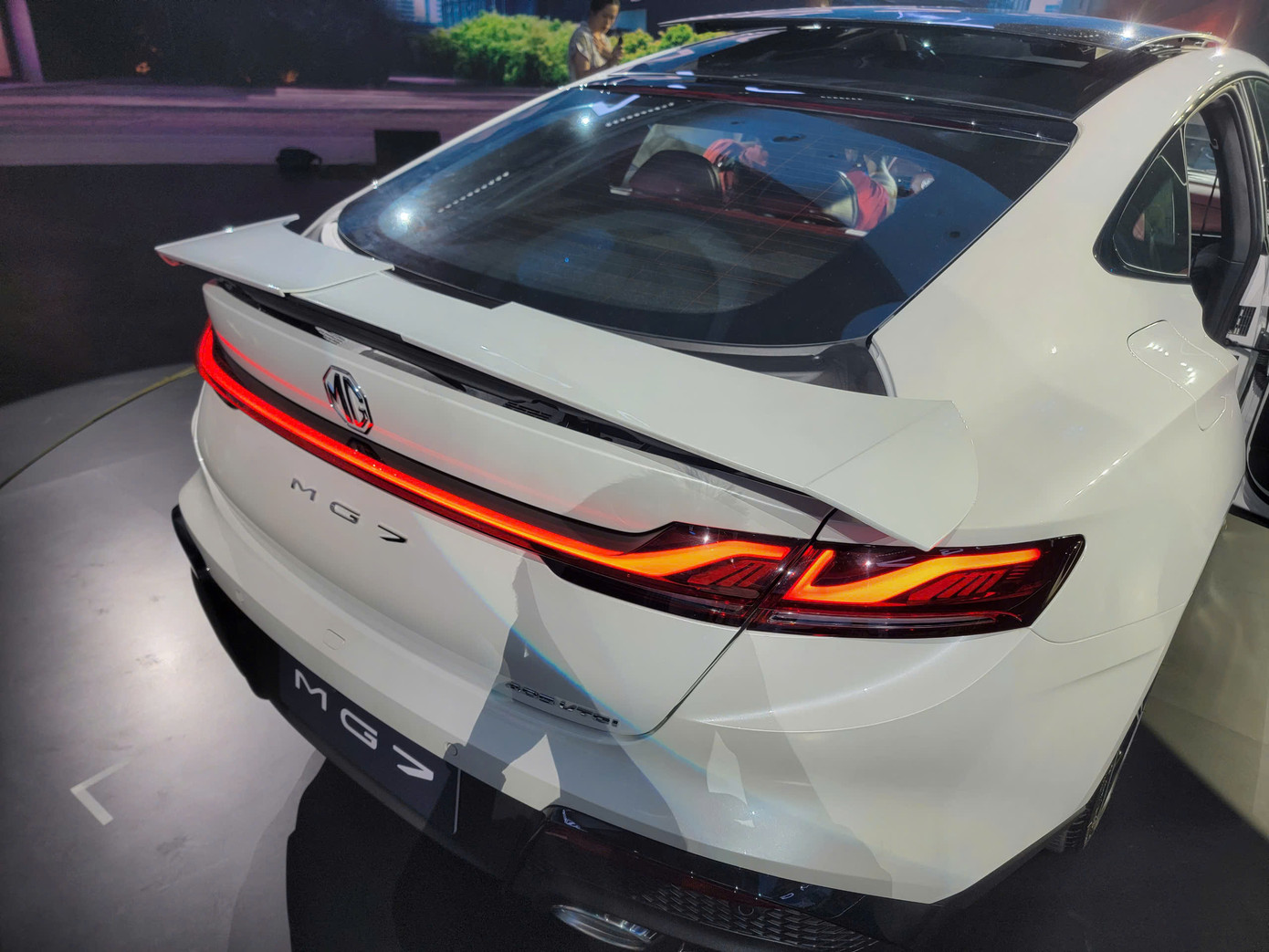 Phía sau xe là dải đèn hậu LED nối liền. Hai góc dưới của cản sau là cặp ống xả kép hầm hố. Đáng chú ý, MG7 được trang bị một cánh gió bán tự động sẽ mở ra khi đạt vận tốc hơn 100km/h và đóng lại khi xe chạy dưới 70km/h. Ngoài ra, người lái cũng có thể tùy ý nâng hạ bộ phận này thông qua nút chức năng trong khoang cabin.