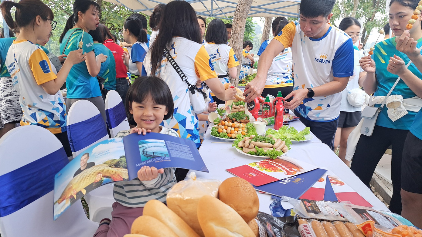 | Các vận động viên thưởng thức các sản phẩm của Mavin Foods sau khi hoàn thành cự ly chạy đăng ký |