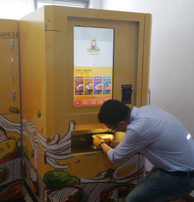 Cơ chế hoạt động của máy như sau: Khách hàng đặt mua và thanh toán tiền bằng cách bấm nút trên màn hình cảm ứng của máy. Ngay lập tức, một cánh tay robot bên trong của máy sẽ gắp mì và thịt bò rồi thả vào nước súp để đun sôi. Khoảng hai phút sau, máy sẽ nhả ra tô mì bò nóng hổi từ ngăn phía dưới.