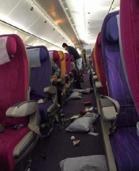 Hậu quả, máy bay rung lắc dữ dội khiến sáu người bị thương, trong đó có một hành khách và 5 thành viên phi hành đoàn. Vết máu loang lổ trên ghế là của hành khách do người này không cài dây an toàn nên bị văng lên, đầu va chạm vào đồ vật xung quanh.