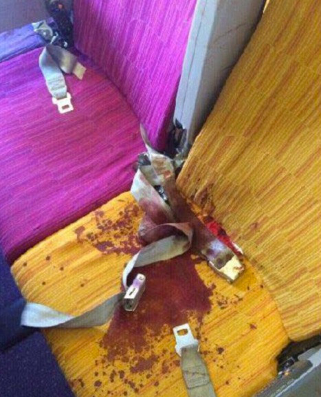 Theo đó, ở một bức ảnh, lối đi giữa hai dãy ghế ngồi phủ đầy rác là những chiếc gối, thực phẩm và đồ đạc của hành khách. Thậm chí, bức ảnh khác chụp lại chiếc ghế dính đầy máu.