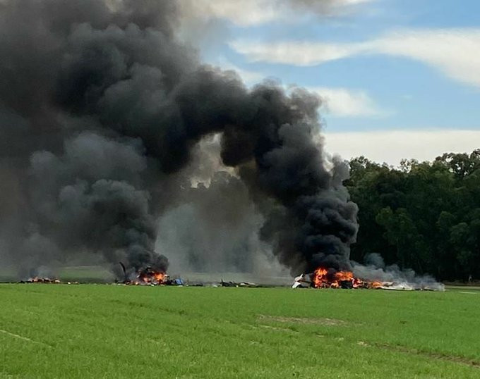 Các bức ảnh được đăng tải trên mạng xã hội cho thấy các bộ phận của máy bay nằm rải rác trên mặt đất. Máy bay đã rơi xuống bãi đất trống và bốc cháy.