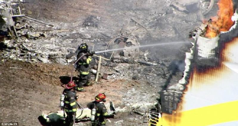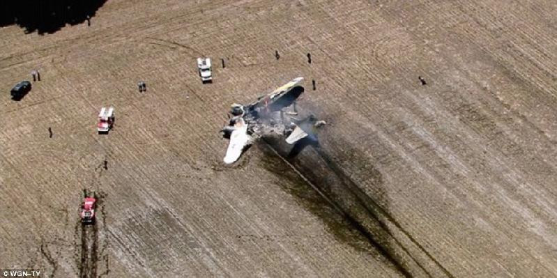 | Máy bay bốc cháy sau khi gặp sự cố. |