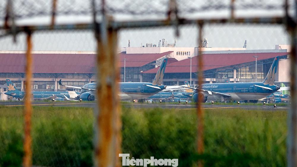 Hai máy bay của hãng VietJet nằm im lìm ở điểm xa nhất của bãi đỗ máy bay tại khu vực nhà ga T2 - Nội Bài. Số máy bay “nằm sân” của Vietjet Air là 63 trong tổng số 74 chiếc; của Bamboo Airways là 19 trong tổng 29 chiếc, được đỗ tại hai sân bay lớn là Nội Bài (Hà Nội) và Tân Sơn Nhất (TP.HCM).