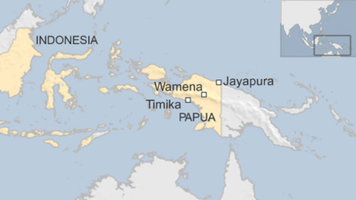 Máy bay cất cánh từ thành phố Timika và rơi gần điểm đến Wamena. Đồ họa: BBC.