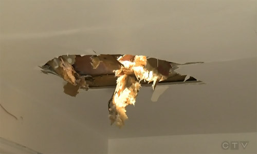 "Người thuê căn hộ trở về nhà sáng nay và bất ngờ khi trông thấy bầu trời qua lỗ thủng trên trần. Cô ấy gọi tôi rất sớm với vẻ sợ hãi. Sau đó, chúng tôi đã đi kiểm tra", CTV News dẫn lời chủ tòa nhà giấu tên cho biết.
