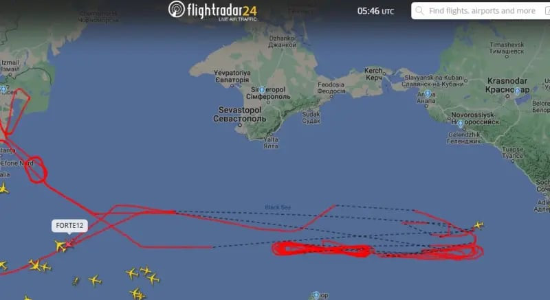 Được biết, ngày 4/6, Flightradar24 đưa tin một máy bay trinh sát không người lái Northrop Grumman RQ-4B Global Hawk của Mỹ có số đuôi 10-2045, ký hiệu FORTE12 đã cất cánh từ sân bay Catania trên đảo Sicily của Ý, sau đó bay qua không phận của Hy Lạp và Bulgaria đến Biển Đen. Chuyến bay của UAV RQ-4B Global Hawk này được hơn 5.000 người dùng theo dõi trước khi biến mất trên màn hình.