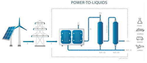 Ban đầu, nước được chuyển đổi sang dạng hơi nước song song với quá trình tách oxy và hydro. Hydro sau đó được sử dụng để chuyển hóa carbon dioxide (CO2) thành carbon monoxide (CO). Ở giai đoạn này, CO sẽ kết hợp với hydro để tạo thành hydrocarbon lỏng. Nó có thể trở thành nhiên liệu sử dụng thay thế khí gas, dầu diesel và nhiên liệu dùng cho máy bay, vốn được tạo ra từ dầu mỏ như hiện nay.