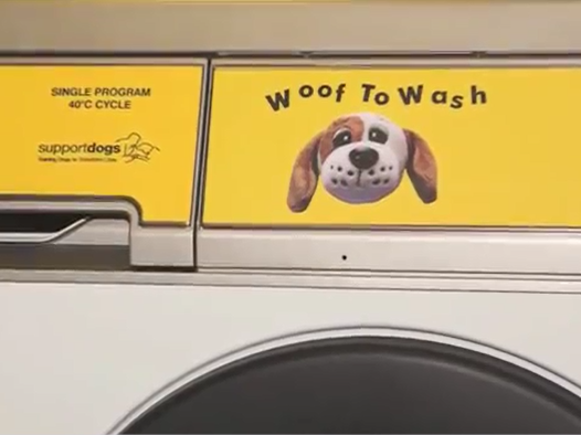 Máy giặt JTM Service được trang bị một bàn đạp đặc biệt để khi những chú chó giẫm chân lên, khoang chứa đồ có thể mở ra. Tuy nhiên, để mở hết cánh cửa, con chó phải kéo một dây treo đặc biệt. Ngay sau đó, bột giặt sẽ tự động được đổ vào máy, và khi con chó cất tiếng sủa, máy giặt sẽ hoạt động.