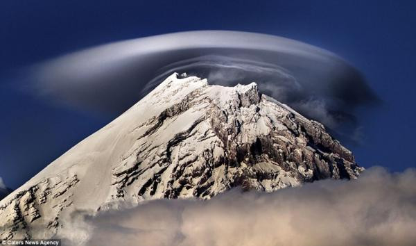 Hiện tượng này xảy ra khi không khí ẩm ngưng tụ trên đỉnh một ngọn núi lửa, chảy xuống, và "vô tình" tạo thành hình dạng của một chiếc đĩa bay giống trong những bộ phim khoa học viễn tưởng.
