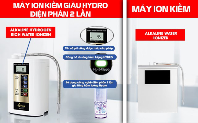 Chỉ có công nghệ điện phân 2 lần độc quyền của máy lọc nước ion kiềm Nhật Bản Atica mới có thể làm giàu hydro tại pH 9.5. Dòng máy lọc nước ion kiềm sử dụng công nghệ điện phân thông thường, muốn tạo ra hàm lượng hydrogen ở mức cao cần nâng độ pH > 10. Tuy nhiên, theo Hiệp hội ion kiềm Nhật Bản, Nước có độ pH > 10 KHÔNG uống được.