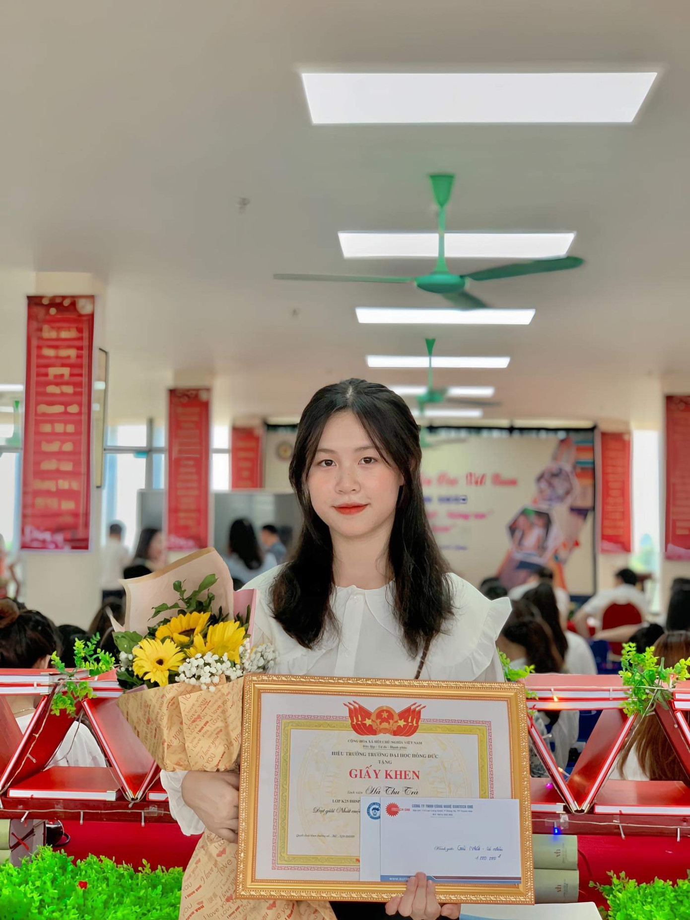 Ngay từ khi bắt đầu là sinh viên, mình đã nhắc nhở bản thân phải luôn năng nổ, nhiệt tình, phát huy hết mọi năng lực với phương châm học hỏi, trau dồi kinh nghiệm để ngày càng hoàn thiện bản thân. Mình đã tích cực tham gia các hoạt động Đoàn - Hội, tham gia các cuộc thi do Nhà trường tổ chức cùng với đó là sự dìu dắt của các thầy cô, anh chị mà mình may mắn đạt được nhiều thành tích đáng kể đến như: đạt giải Nhì cuộc thi MC tài năng, đạt giải Nhất cuộc thi Sách, một trong số ít sinh viên năm nhất được tặng Giấy khen đạt thành tích xuất sắc trong công tác Đoàn - Hội...