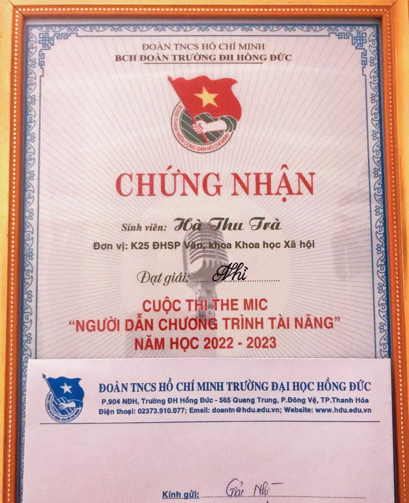 | Thu Trà đạt giải Nhì cuộc thi MC tài năng. |
