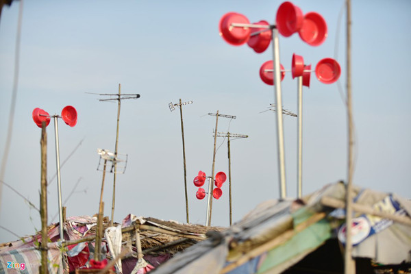 Chị Huyền, một cư dân tại bến gốm cho biết. Hệ thống điện gió quay cả ngày đủ để thắp sáng một bóng đèn Led 4 đến 5 giờ đồng hồ.