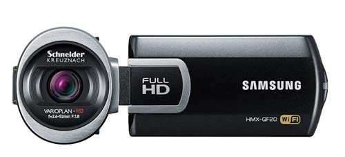 Samsung HMX-QF20 được tích hợp sẵn chức năng kết nối wi-fi và cảm biến xoay màn hình, giúp tự động đảo chiều menu tùy chọn khi màn hình xoay ngược lại. Đây là tính năng của các mẫu smartphone hiện đại lần đầu tiên ứng dụng cho máy quay phim.