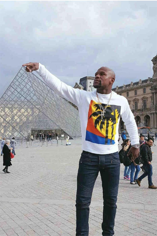 Mayweather đứng trước bảo tàng Louvre nổi tiếng tại Paris.